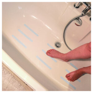 On slippery bathroom floors and in bathtubs, water can make surfaces treacherously slippery. With the right anti-slip protection, the risk of slip accidents among hard bathroom fixtures like sinks and toilets is reduced.