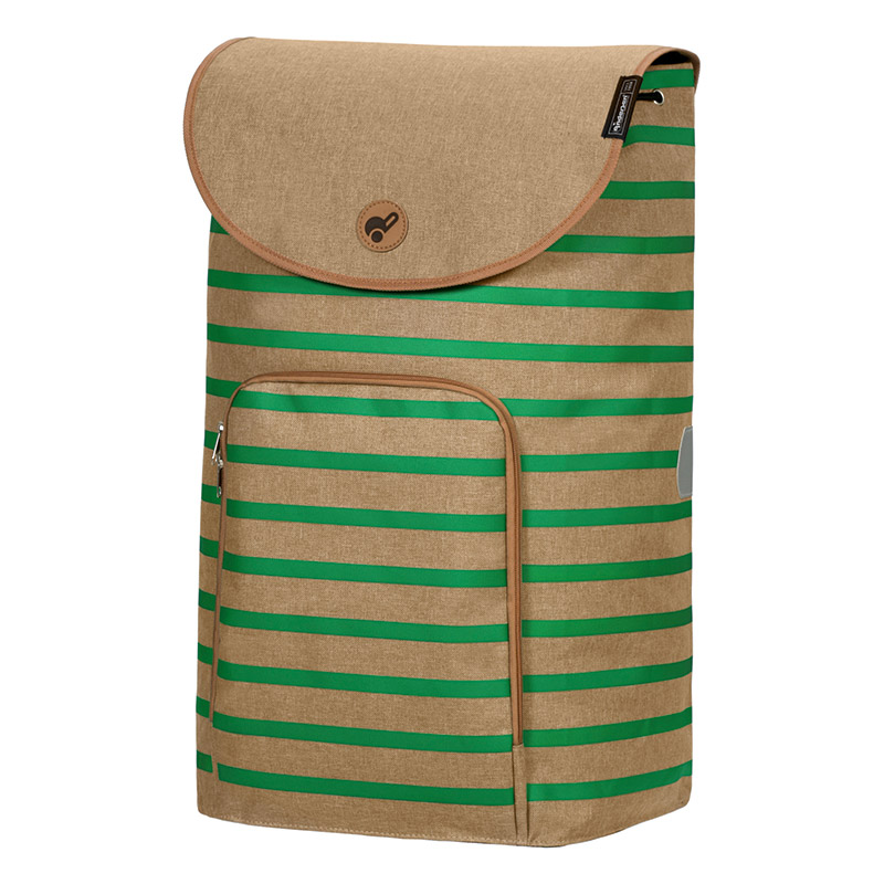 The Andersen Shopping Trolley Bag Eske Green is a colorful and stylish bag. With its delightful stripes, it adds a cheerful touch to your everyday life. The bag is water-repellent and has a capacity of 47 liters. Eske features a front compartment with zipper closure for secure storage. It has an additional small interior pocket perfect for items like keys. This gives Eske space for most things you might need. Under the round lid, the bag can be completely closed with a drawstring for added security. Smart reflective elements make you visible in the dark, and when not in use, the bag can be completely flattened.
