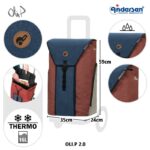 The Andersen Shopping Trolley Bag Oli.P 2.0 Blue is a practical and spacious bag for Andersen shopping trolleys. The Andersen Oli.P bag was developed in collaboration with German singer and entertainer Oli.P. The bag represents that a sustainable lifestyle can be both fun and colorful. The bag has a practical lid that attaches with a hook and is adjustable in height. This allows the bag to expand with your cargo when you need to pack more. The bag is water-repellent and can hold 50 liters. Inside, the bag is divided and has a cooling compartment that holds 16 liters. It also has a hidden front pocket, practical for keys or other small items. The bag is easy to attach and remove from the shopping trolley.