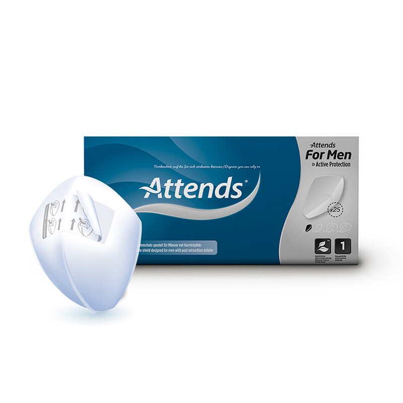 Attends For Men 1 is an anatomically shaped pad, specially developed to manage light urinary incontinence and post-void dribble in men. The pad features a breathable textile-like barrier layer that provides increased comfort, discretion, and good skin health.