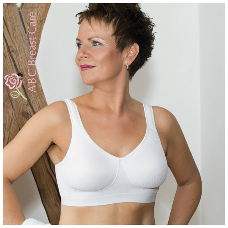 Camp Scandinavia Massage Bra White is a prosthesis bra in microfiber with a special material structure that creates a light massaging effect to promote lymph flow. It has molded, seamless cups and soft, lightly padded elastic shoulder straps for extra comfort. The wide and soft band under the bust provides extra support. This bra is an excellent choice for women with lymphedema, but also perfect for anyone seeking a comfortable bra to wear at home or during exercise and other leisure activities.
