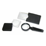 One with 6x power bi-focal spot lens, one 3x power fold-out magnifier with built-in case, and one 2.5x credit card-sized Fresnel magnifier with a retractable protective cover.