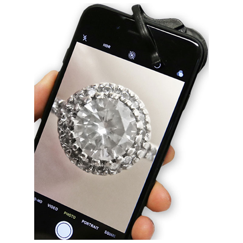 To use the clip on your smartphone, simply remove the eyecup from any of the loupes and slide on the included clip. Then turn clockwise until it snaps into place. You can then open your phone’s camera app and take pictures or film things that are hard to see and share them with loved ones.
