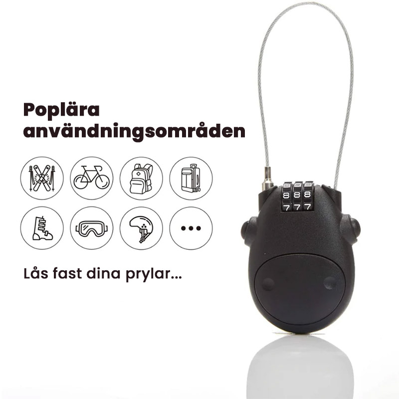 Our combination lock with cable is perfect for use both at home and while traveling. The lock is easy to carry and simple to use.