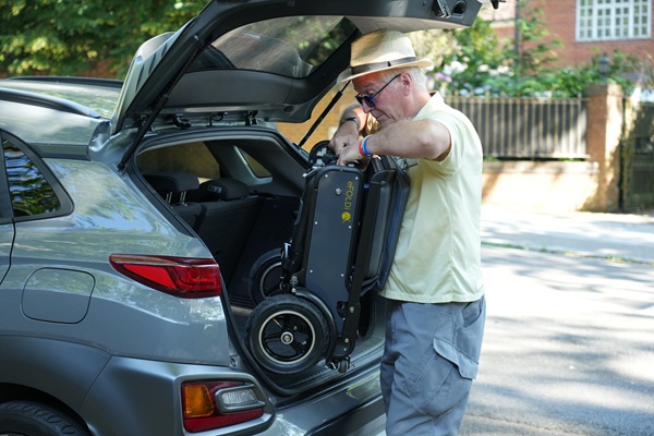 The unique patented design makes the eFOLDi Explorer extremely easy to transport. When folded, it can be easily carried like a suitcase or maneuvered using the steering rod. The flexible design allows you to take your scooter everywhere – from short errands to longer trips.