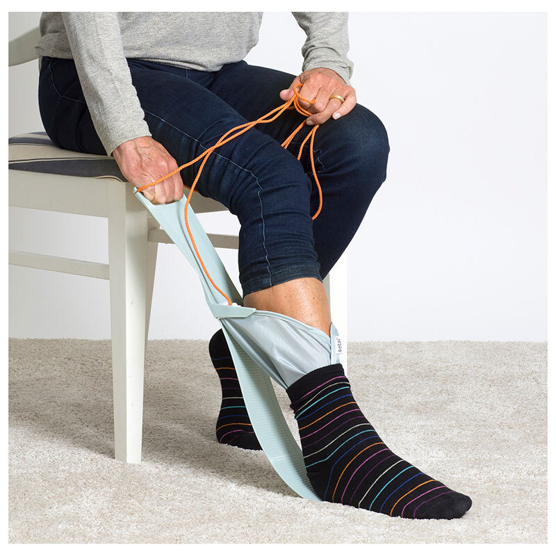 The Etac Sock Aid Socky Long is a practical aid that enables users with limited mobility to put on socks independently.