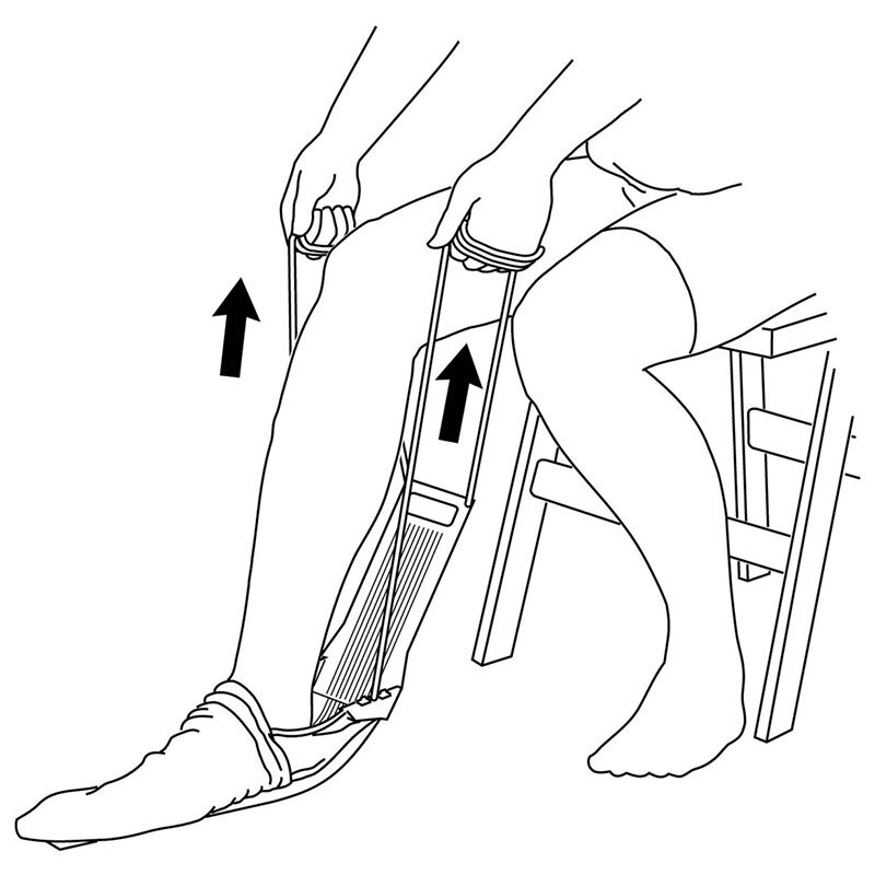 The sock aid’s plastic plate glides easily on all floors while providing a stable grip that makes pulling up the sock easier.