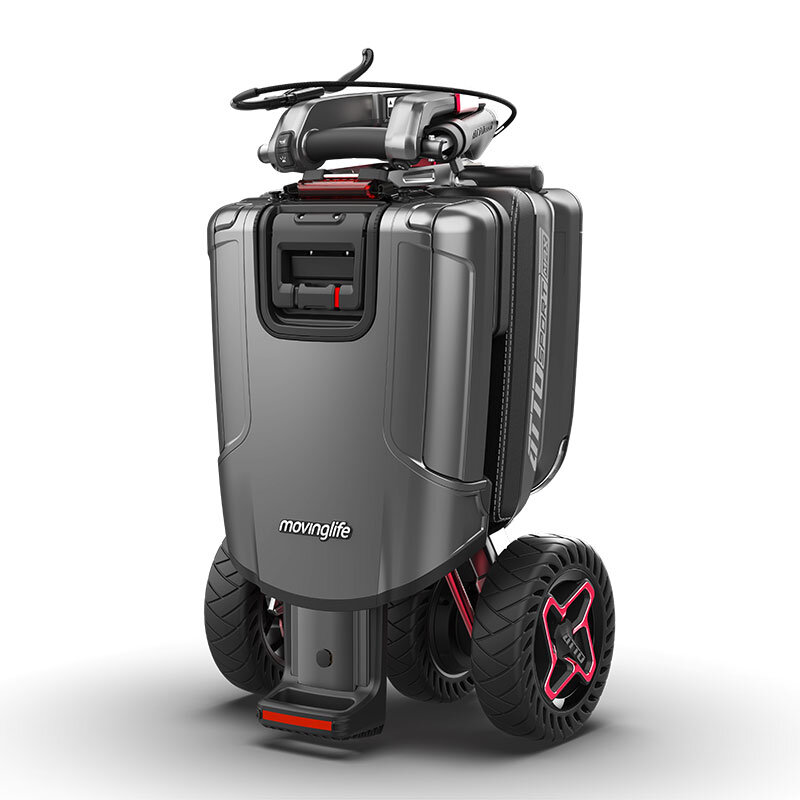 The Movinglife Scooter ATTO Sport Max is a new update of the market’s smartest mobility scooter. The Max model is built to handle a higher weight capacity than the ATTO Sport, with a maximum weight of 136 kg. It can be quickly and easily folded from a three-wheeled scooter into a convenient cabin-sized trolley. The ATTO Sport Max can also be separated into two parts for easier lifting into a car trunk. It’s easily transportable and makes an ideal travel companion.