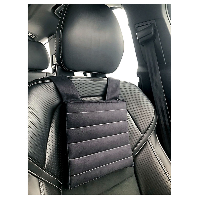 Scanergo Comfortex ChestRest is a soft distance plate that helps position the upper back forward a few centimeters so that the head aligns correctly with the car’s headrest.