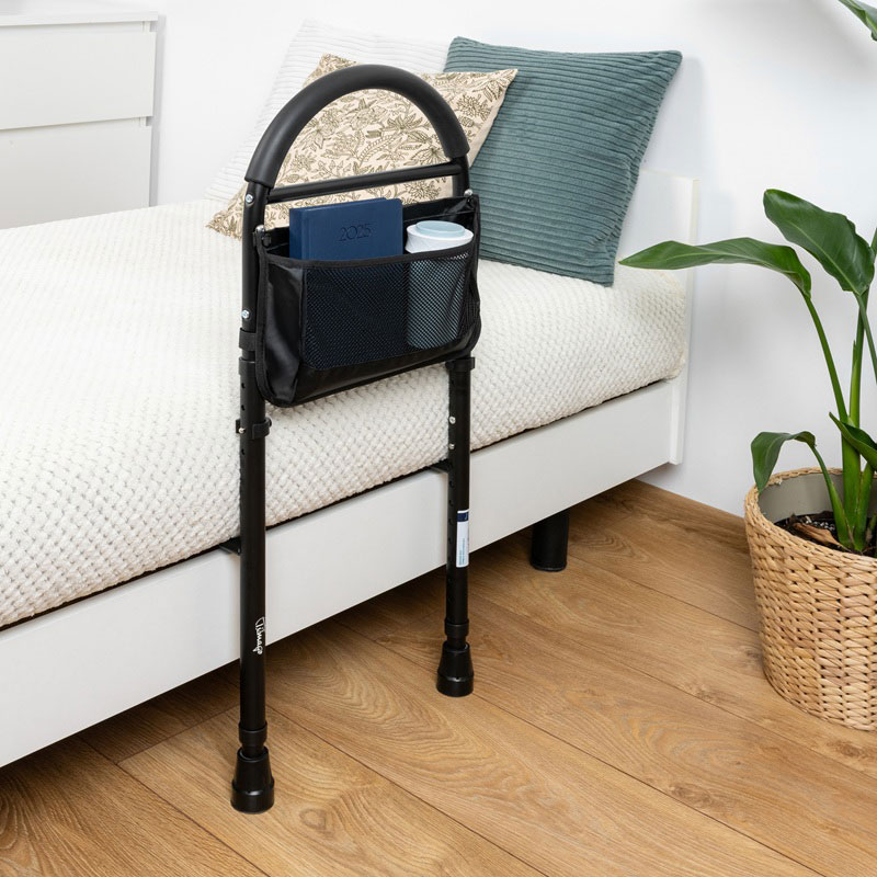 This stable bed rail is suitable for both home use and healthcare settings. The robust construction and height-adjustable legs ensure that the rail fits most standard beds and user needs. The Timago Bed Support Grip Tim makes daily routines safer and more comfortable for users with mobility challenges.