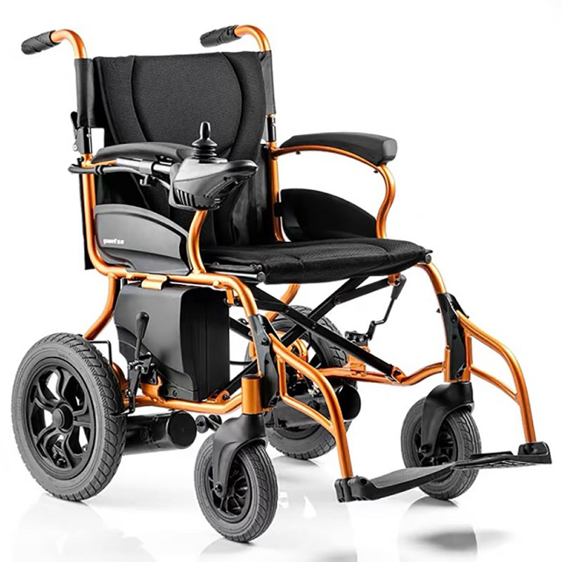 The control panel has an on/off button, button illumination, adjustable acceleration, joystick, and horn. The wheelchair is equipped with a safe and reliable electromagnetic brake and a fully sealed maintenance-free battery. For safe driving and movement, the wheelchair has smart anti-tip wheels.