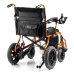 Timago Electric Wheelchair Tim II is a smart and compact electric wheelchair with small rear wheels and an energy-efficient 130W motor. With a fully charged battery, the range is up to 20 km depending on user weight and terrain. The electric wheelchair works excellently for both indoor and outdoor use. It can be folded and unfolded easily and weighs 28 kg. The seat has a safety belt that can be used when required.