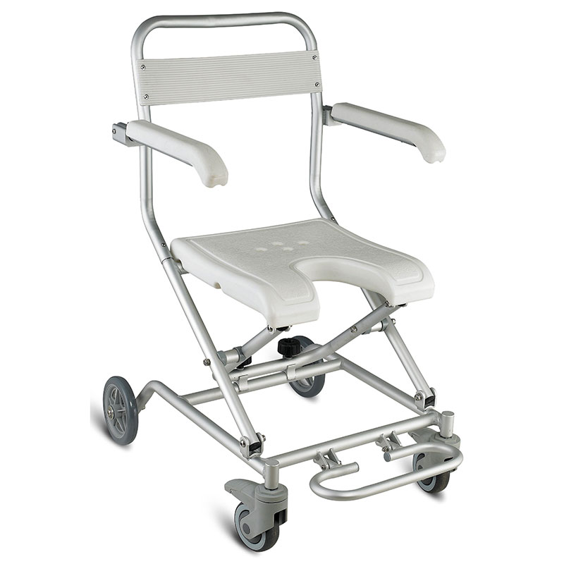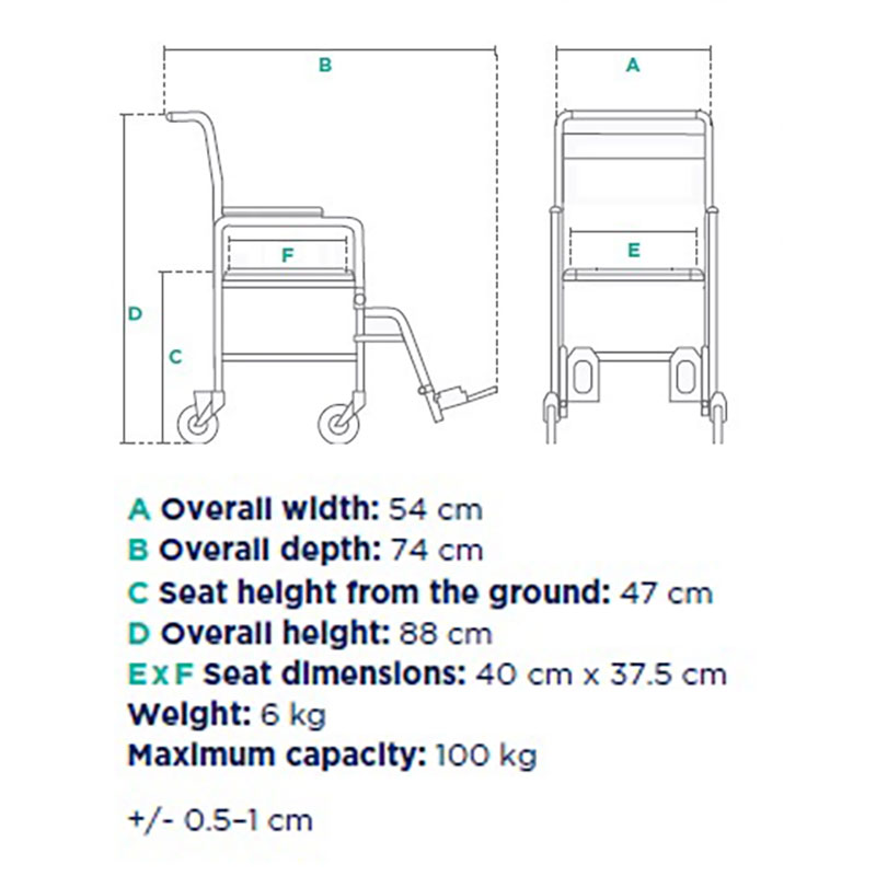 Timago Foldable Shower Chair Tim is a stylish shower chair with wheels. The Tim shower chair can be folded, making it our most convenient shower chair for storage or transport. The transport shower chair is supplementary equipment that helps users perform hygiene activities. The chair is especially suitable for people with reduced mobility, dysfunctions, and motor disorders. The chair should only be used with the assistance of an accompanying person.