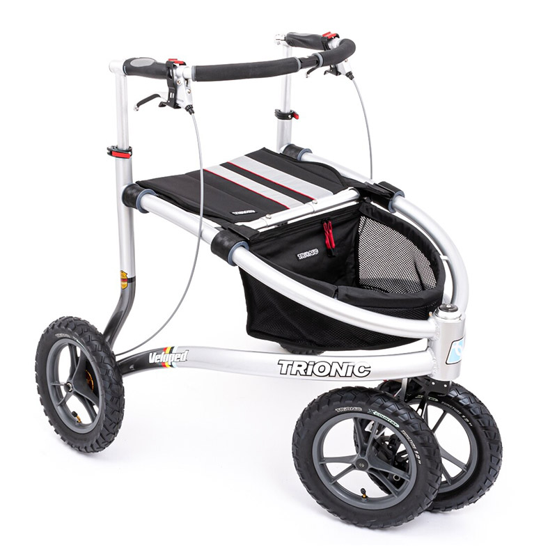 The Trionic Veloped Tour 12er is a smart Swedish innovation that has revolutionized walking and outdoor activities for active individuals requiring mobility assistance. The Trionic Veloped is much more than a regular rollator; it’s a “walking tricycle” that has been tested and approved as a fully functional rollator. With its unique design, the Veloped focuses on promoting physical activity and enabling you to enjoy nature. It is the world’s first rollator specifically designed for off-road terrain and is unbeatable when it comes to uneven surfaces.