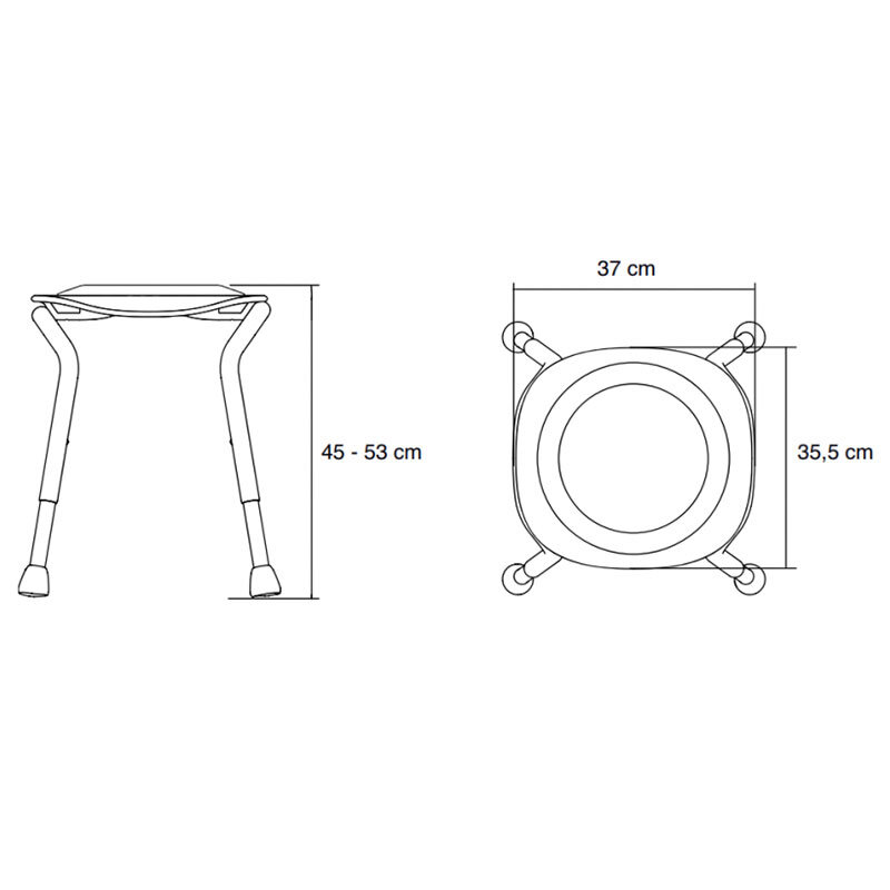 Trust Care Let’s Frisbee Shower Stool features a modern design specifically made for shower and bathroom use. The shower stool has a sleek and robust construction for safe use. The legs can be easily adjusted in height with a push-button that also secures firmly. The seat height is adjustable between 45-53 cm.