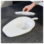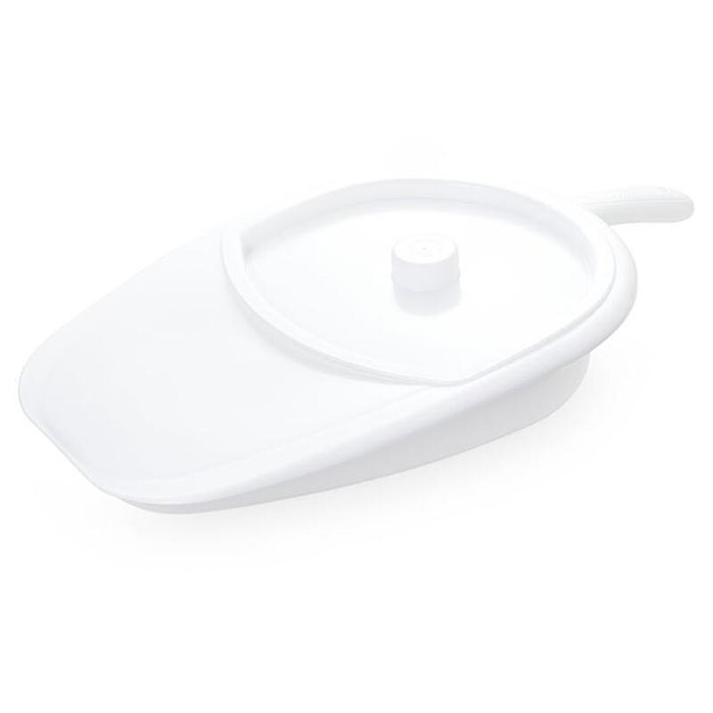The Vitility Bedpan With Lid is a plastic bedpan designed for bedridden patients. With its sloping front, the bedpan can easily be slid under the buttocks. This means you don’t need to move anyone to use the bedpan.