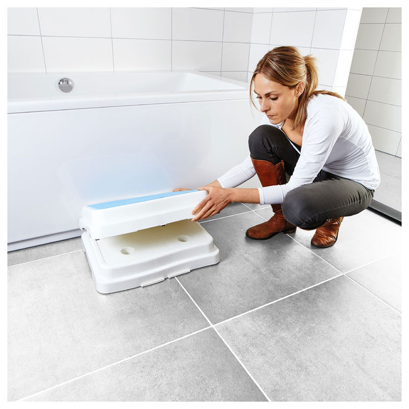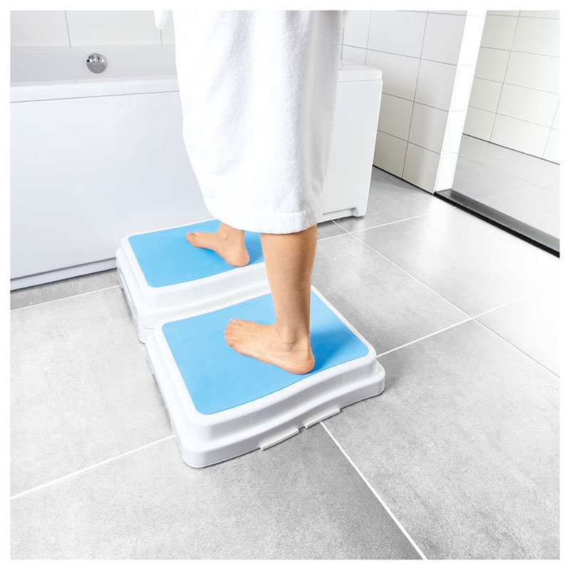 Vitility Step Stool makes it safer and easier to get in and out of places such as a bathtub. The stool is light and convenient and can be stacked to achieve desired height. Each stool is 10 cm high independently, and when attached to each other, each additional stool adds 5 cm of height.
